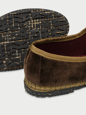 L’extérieur de la chaussure est en velours 100 % coton, et l’intérieur est en coton biologique 100 % avec traitement antibactérien.