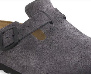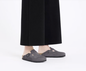 Le sabot Boston, un classique parmi les modèles de BIRKENSTOCK, se présente ici dans un aspect moderne et la fois très naturel. C'est ce dont s'assure le dessus en cuir velours de grande qualité et particulièrement souple, au fini ciré tendance.
