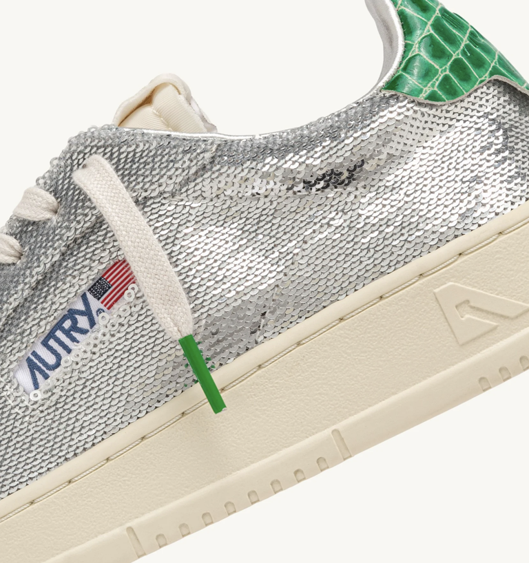 Baskets Dallas Low 'Sparkling' En Paillettes - Argent et Vert
