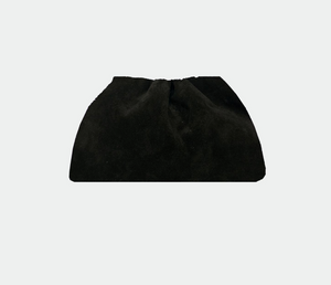 Pochette souple en cuir de veau façon velour, avec doublure intérieure en coton et fermeture magnétique. Compartiment unique avec petite poche. Finitions métalliques couleur gunmetal. Bandoulière amovible en cuir de veau.