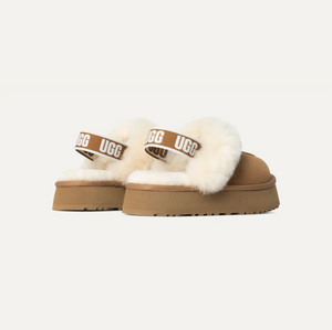 Plus petite mais toujours aussi stylée, la Funkette pour enfant conserve la même silhouette à enfiler, la même plateforme audacieuse et la même doublure aussi douce que l’originale. Confectionné en daim de qualité et doté d’un bracelet en peau de mouton confortable, ce modèle affiche d’une lanière à l’arrière ornée du logo UGG™ pour garder les petits pieds en sécurité où que les aventures les mènent. À assortir avec notre chausson pour femme coordonné pour faire des photos mère-fille. La semelle extérieure de ce produit est soit une semelle extérieure SugarSole™, un composé responsable utilisant de la mousse de canne à sucre qui nous permet de réduire la dépendance aux combustibles fossiles en remplaçant l’éthylène à base de pétrole, soit une semelle extérieure Treadlite by UGG™.