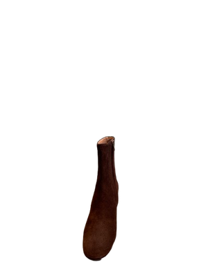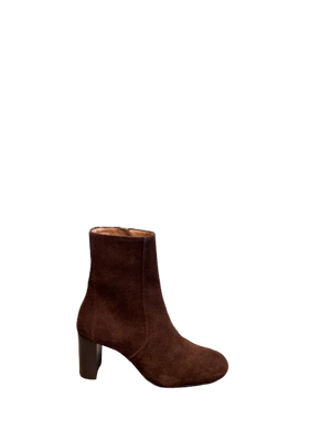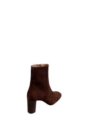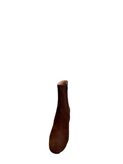 Bottines élégantes en suede brun avec un talon en cuir de 6,5 cm