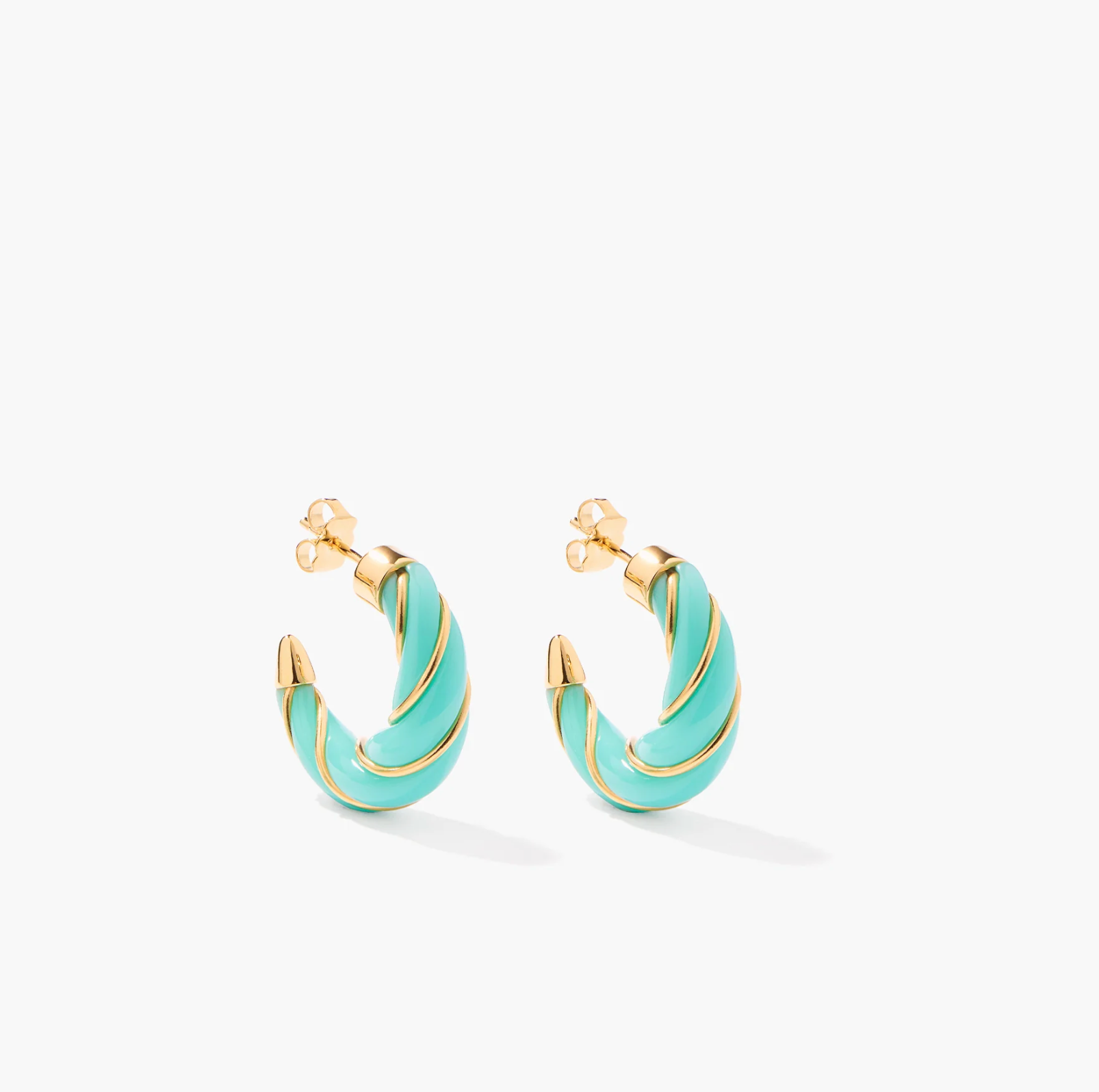 Boucles d'oreilles Diana torsadé en bakélite couleur aqua, dorées à l'or jaune 750/1000.