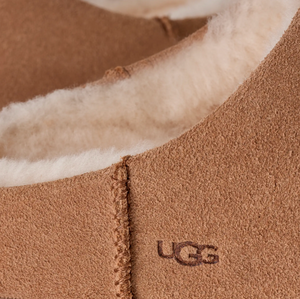 Moderne et minimaliste, le chausson Elea à enfiler est un modèle que vous pouvez porter dehors. Confectionné en daim lisse, il est pourvu d’un design légèrement matelassé qui apporte du volume. Profitez du confort UGG® que vous appréciez tant grâce à la doublure et à l’assise plantaire en peau de mouton moelleuse. On ne vous en voudra pas si vous ne voulez plus jamais quitter ce chausson.