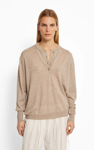 Maille fine mérinos Roseanna, modèle ELLA, coloris Beige.
