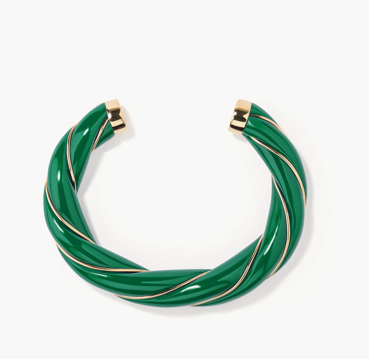 Jonc Diana torsadé en résine coloris émeraude, doré à l'or jaune 750/1000.