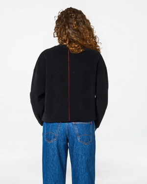 Le sweatshirt Kallos se présente dans une version noire oversize au style contemporain affirmé. Conçu pour allier confort et caractère, il se distingue par ses épaules tombantes et ses finitions côtelées aux poignets et à la taille, assurant un bon maintien tout en soulignant les lignes du vêtement. À l’arrière, une ligne rouge signature Homecore vient sublimer la coupe avec discrétion et originalité.