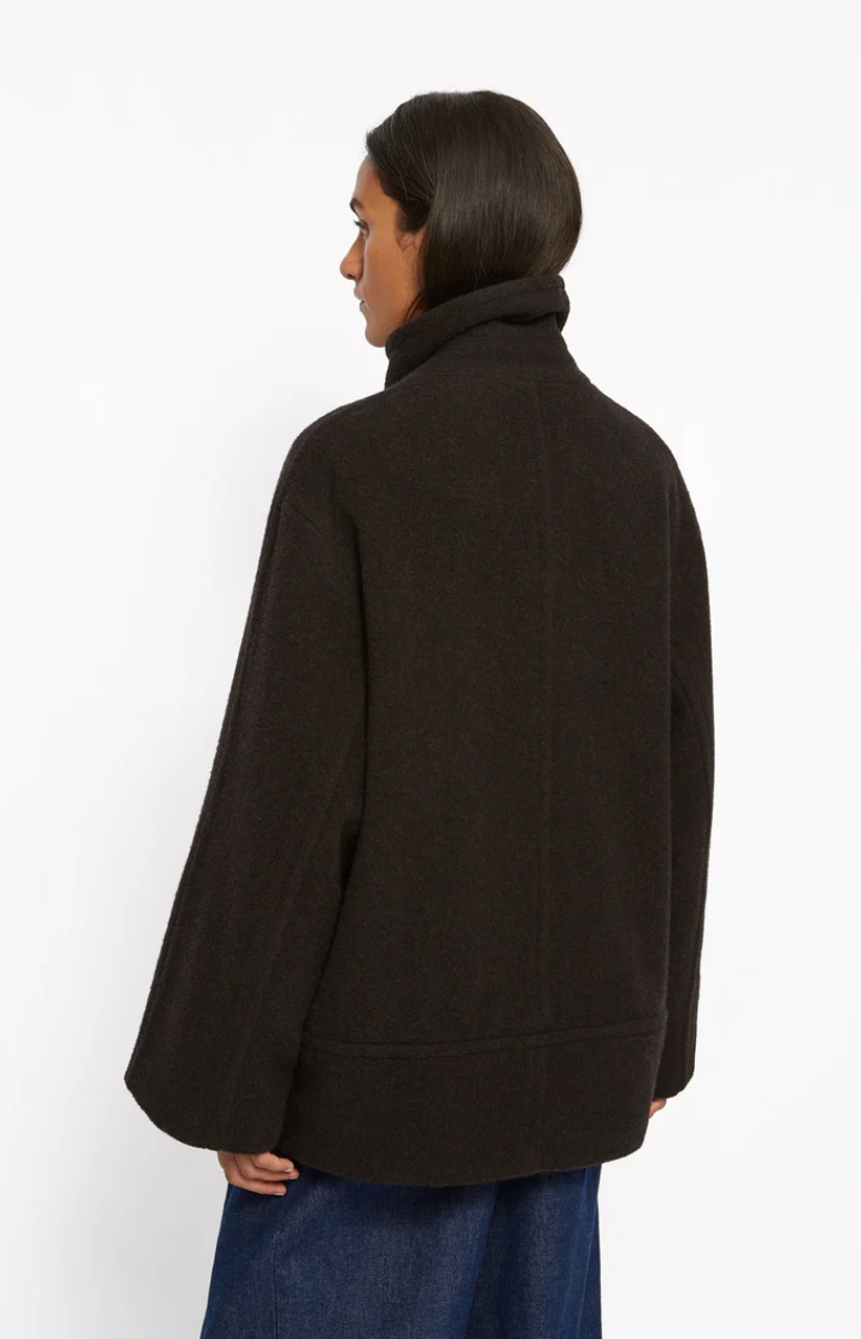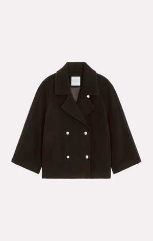 Manteau court en laine Roseanna, modèle DRIVER, coloris Dark Chocolat.