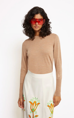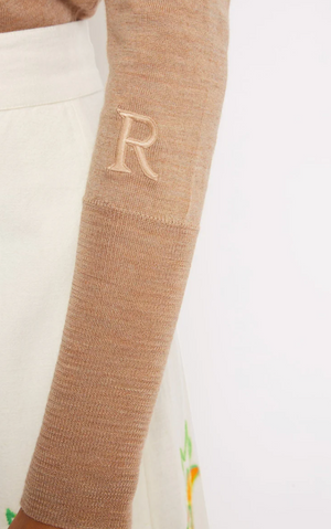 Le thème Harmony célèbre des pièces intemporelles en maille fine, tricotée en Italie. Ce modèle iconique, orné d’une broderie R ton sur ton en bas de manche, allie discrétion et élégance essentielle.