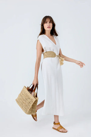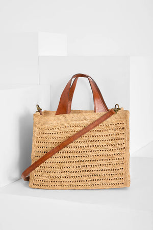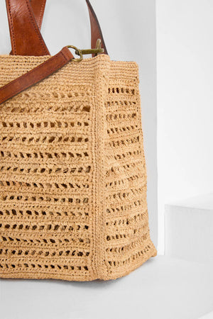 100% en Raphia naturel. Les anses sont en cuir de zébu tanné selon un procédé végétal.