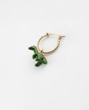 Boucle d'oreille dinosaure en porcelaine et laiton doré à l'or fin.