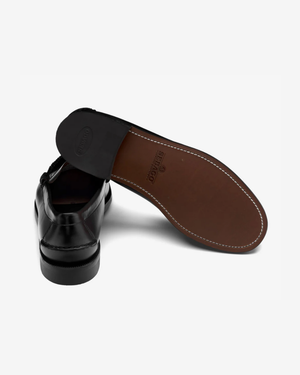 Fabriqué en cuir pleine fleur et cousu à la main, le mocassin penny loafer peut être porté toute l'année. Le dessus de la chaussure est en cuir non doublé, le talon est en caoutchouc moulé et la semelle en cuir naturel traité offre résistance, flexibilité et imperméabilité.