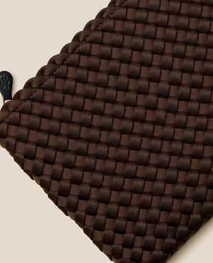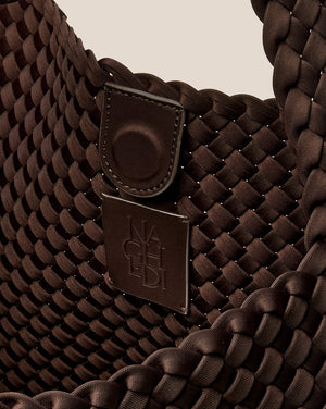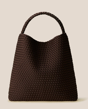 Néoprène tissé à la main en brun chocolat. Interprétation moderne de notre hobo classique, le Nomad Large Hobo est ultra-spacieux, avec une large bandoulière qui repose à plat sur l’épaule.