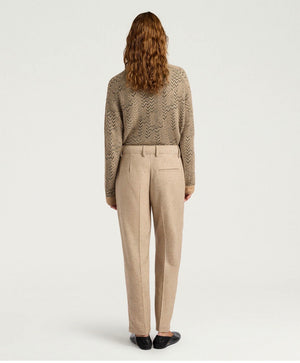 Pantalon slack en tissu chevron de laine italienne. Matthieu présente une ligne formelle avec une jambe régulière qui se ferme dans le bas et une longueur à la cheville. Un must-have de toutes les garde-robes. Sangle avec passants et fermeture zippée et boutonnée en corne. Poches françaises sur le devant.