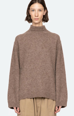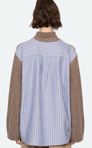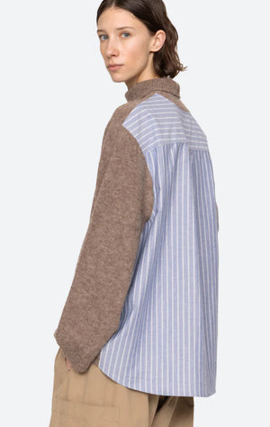 Le pull col roulé combo Mallory mélange textures et contrastes avec un corps en maille, des détails en côtes et un dos en tissu à rayures nettes. Doté de manches longues larges et d’un col haut, il offre un look soigné et raffiné.
