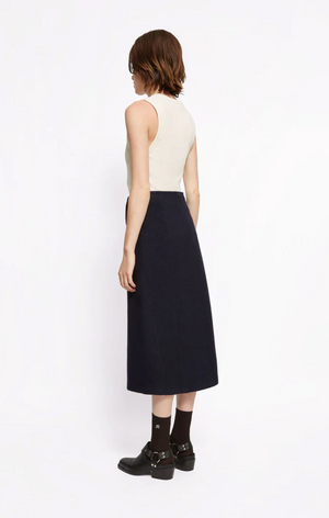 Jupe midi en laine Roseanna, modèle MARTIN, coloris Dark Navy.