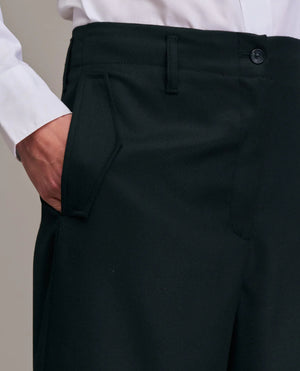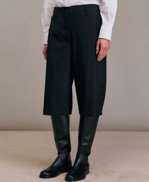 Bermuda confectionné en filature avec un mélange de coton. Taille mi-haute avec passants de ceinture. Poches latérales. Détail de pinces sur le devant. Fermeture.