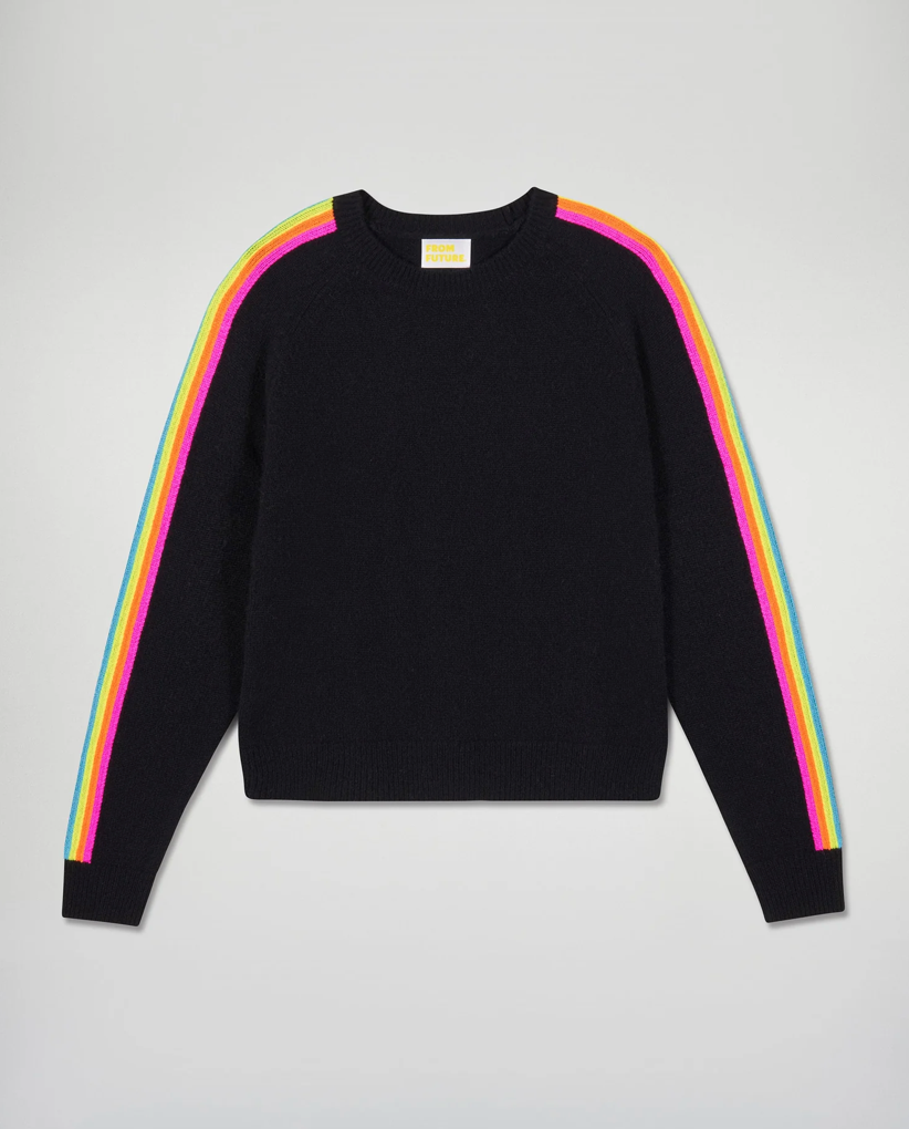 Avec un col rond et des bords côtelés, ce pull court adopte une maille en 100% cachemire pour réchauffer votre silhouette avec style. Pièce signature de l'allure From Future, des bandes multicolores se dessinent le long des manches. Associez-le à un t-shirt, un pantalon large et des sneakers pour un look casual.