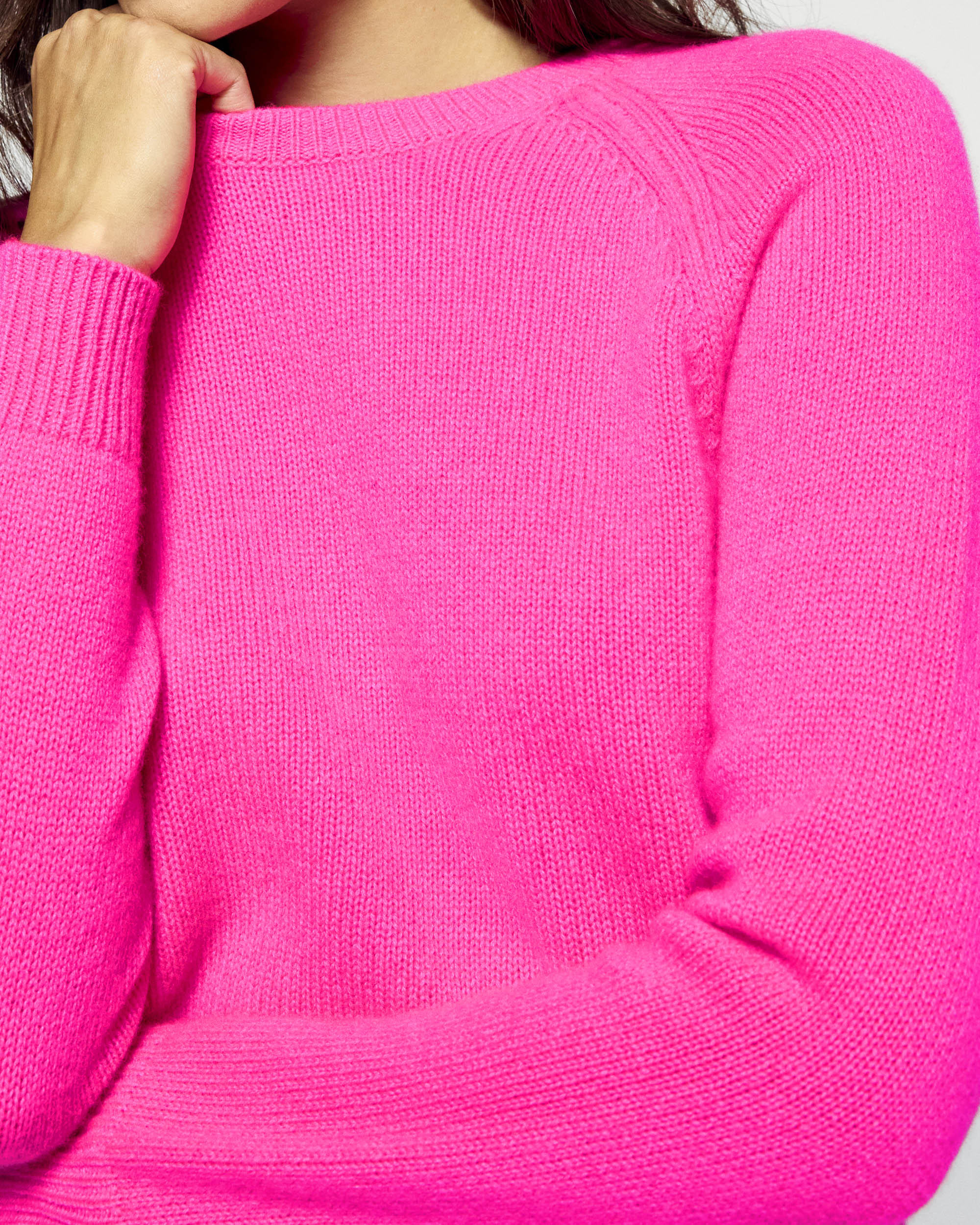 Décliné dans un colorama inédit, ce pull en cachemire s'impose comme un indispensable de votre vestiaire. Sa coupe courte et ajustée, rehaussée d'un col rond et de manches longues raglan, souligne avec élégance toutes les silhouettes. À porter sans modération, il se mixe à un jean droit ou une jupe fluide.