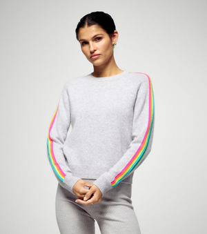 Avec un col rond et des bords côtelés, ce pull court adopte une maille en 100% cachemire pour réchauffer votre silhouette avec style. Pièce signature de l'allure From Future, des bandes multicolores se dessinent le long des manches. Associez-le à un t-shirt, un pantalon large et des sneakers pour un look casual.