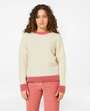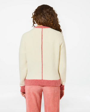 Le pull Baby Lila se décline en crème et rose, il incarne un style doux et affirmé. Sa maille texturée apporte du caractère, tandis que sa coupe fluide avec manches raglan dessine une silhouette naturellement décontractée. Féminin sans effort, il est souligné par une ligne rouge décorative au dos, détail emblématique d'Homecore. Un essentiel du vestiaire, à la fois confortable, moderne et intemporel.