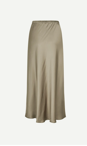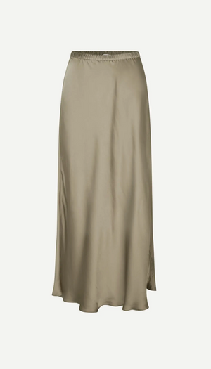 Jupe mi-longue taille mi-haute en satin, coupe regular. Ceinture élastiquée.