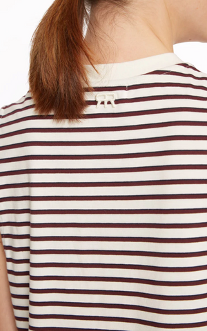 Ce jersey de coton à rayures, tissé au Portugal, offre une texture souple et confortable.