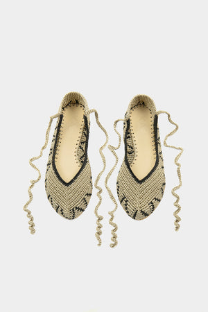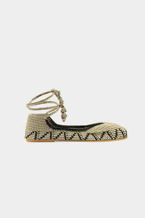 Notre ballerine marron cacahuète est crochetée à la main en Inde.
