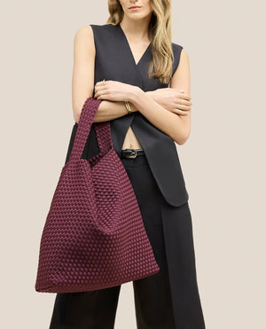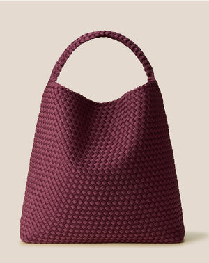 Néoprène tissé à la main dans un riche bordeaux. Interprétation moderne de notre hobo classique, le Nomad Large Hobo est ultra-spacieux, avec une large bandoulière qui repose à plat sur l’épaule.