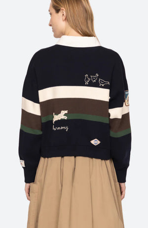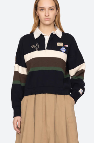 Inspiré des styles de rugby vintage, le pull rugby Arther se distingue par ses blocs de couleurs graphiques, ses broderies soignées et ses étiquettes personnalisées « Sea ». Une revisite moderne d’un grand classique universitaire.