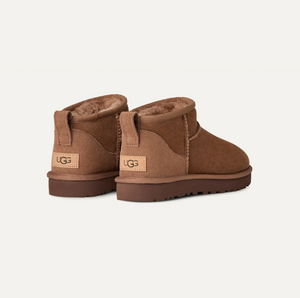 La Classic Ultra Mini est l’un de nos modèles Classic les plus prisés. Indéniablement tendance, elle présente une tige basse qui permet de l’enfiler et de la retirer rapidement. Pré-traité pour afficher une allure impeccable au fil du temps, ce modèle Classic incorpore tous vos éléments préférés présents sur la botte Classic : la peau de mouton iconique UGG et une semelle souple ultralégère. Ce produit a été fabriqué dans une usine qui soutient les femmes intervenant dans notre chaîne d’approvisionnement par le biais de HERproject. Cette initiative collaborative crée des partenariats avec des marques comme la nôtre pour valoriser et former les femmes sur le lieu de travail. La semelle extérieure de ce produit est soit en EVA issu de la canne à sucre, un composé responsable utilisant de la mousse de canne à sucre qui nous permet de réduire la dépendance aux combustibles fossiles en remplaçant l’éthylène à base de pétrole, soit en Treadlite by UGG™.