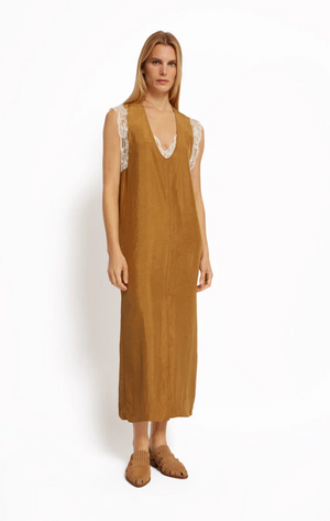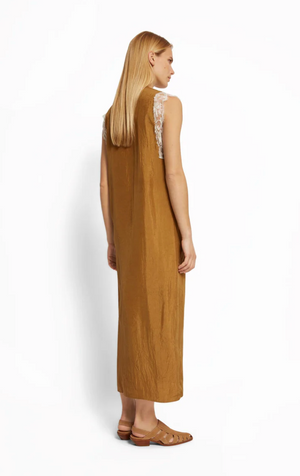 Robe en satin Roseanna, modèle TILDA, coloris Bronze.